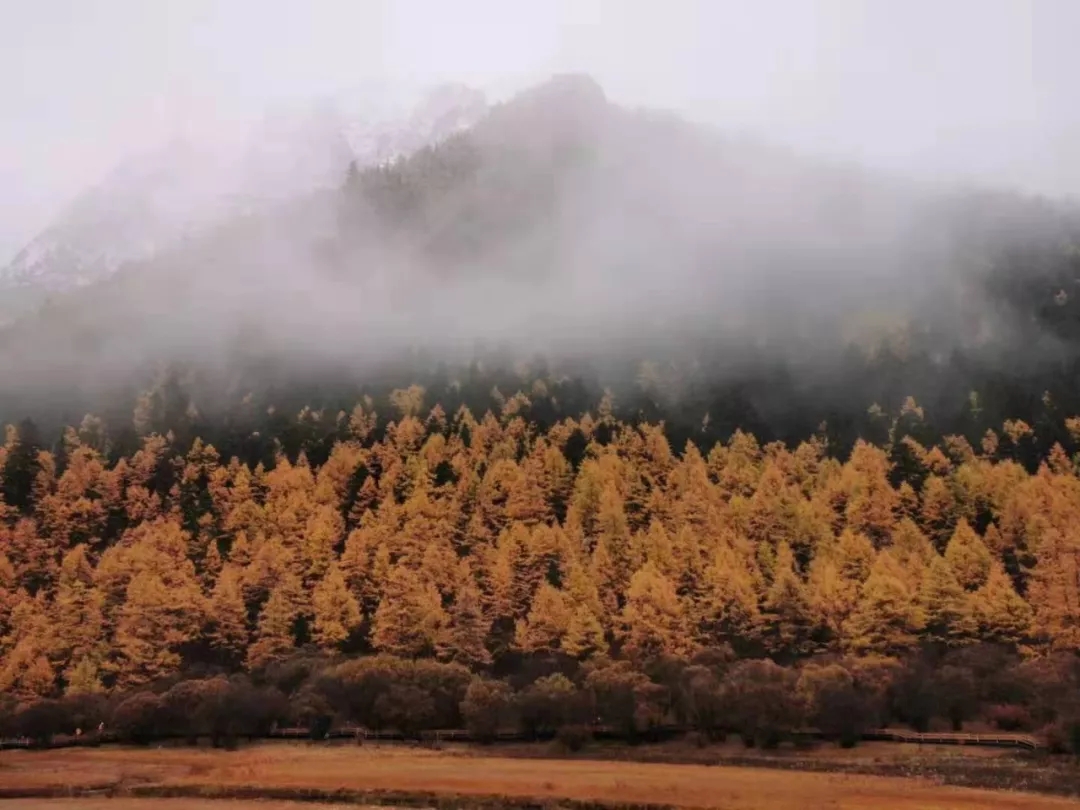 天公不作美,强风雨雪天。洛绒牛场位于央迈勇、仙乃日和夏诺多吉三座神山的脚下,一直特别期待央迈勇的壮美景色,无奈雾蒙蒙的天把央迈勇遮住了。