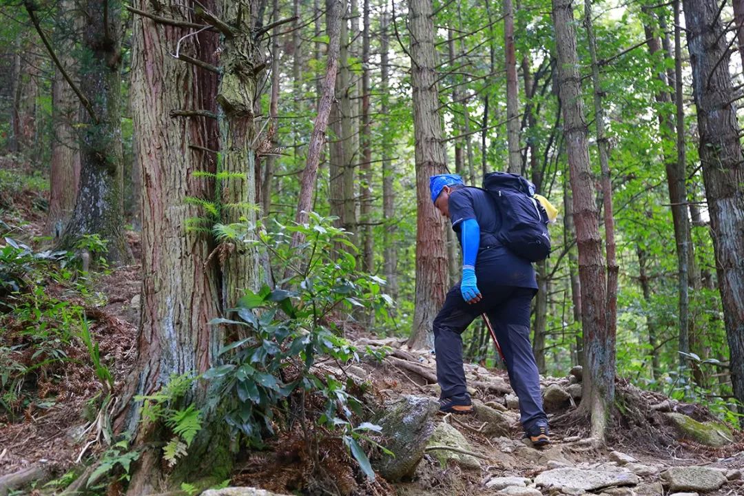 崩溃的上山路——上山路段土质湿滑松软,坡度基本上都是五六十度,大大增加了上山的难度,每爬升50米就要停下喘气休息,对于我们来说是个大挑战。数不尽的上坡,滑石块,不免让人走得有些崩溃。