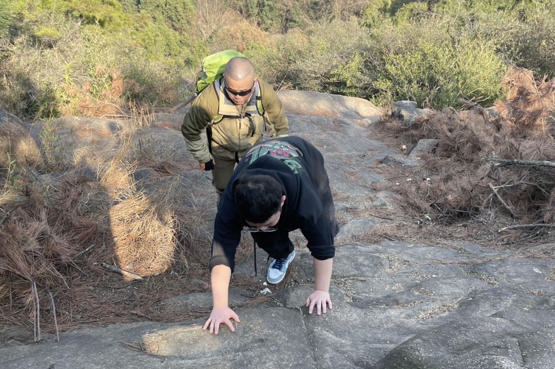 没想到这山路还是千变万化,翻越大山石时,延伸的树枝就成了唯一借力点;走灌木、越小径、穿防空洞,宽度甚至仅可容一人可过,这时就更要小心谨慎。