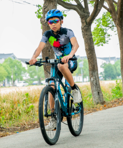 短距离组自行车距离为10公里,小铁人瞬间变身追风少年,上演了一场你追我赶的角逐。