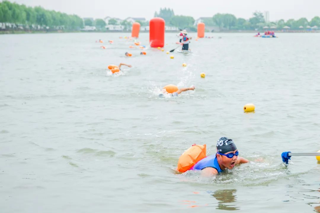 500米的公开水域游泳,首个比赛项目,对于小铁人们来说是个不小的挑战。目不暇接,第一个完成游泳项目的运动员已经进入到了换项区。