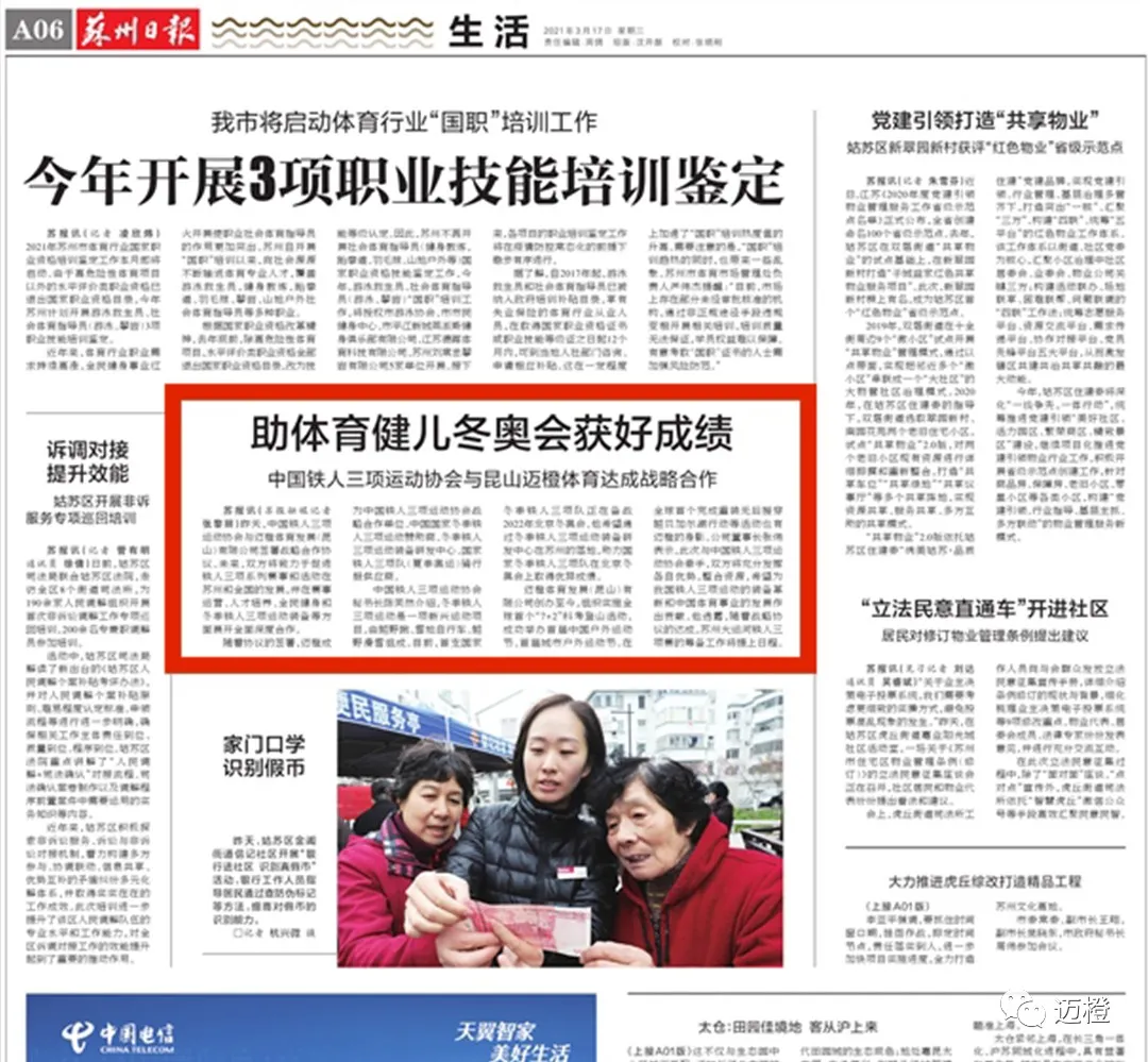 为响应国家“带动三亿人参与冰雪运动”的号召,助力2022年北京冬奥会,助力国家体育健儿在奥运会及其他各项赛事中取得优异的成绩,同时助推中国铁人三项相关产业的发展,3月16日上午,中国铁人三项运动协会(以下简称“中铁协”)与迈橙体育发展(昆山)有限公司(以下简称“迈橙”)战略合作新闻发布会成功召开。