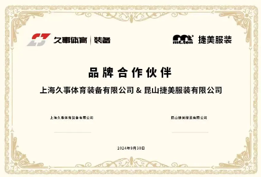 2024年9月30日,昆山捷美服装有限公司与上海久事体育装备有限公司进行品牌战略合作签约仪式,开启了融合创新的新篇章。